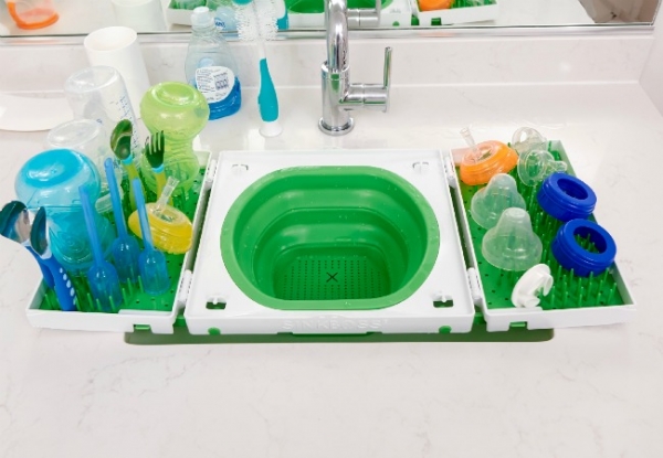 Sinkboss is a portable, all-in-one device that turns the sink environment into a sanitary washing and drying environment. Sinkboss has an issued US Utility Patent, and offers the only complete sanitary and space-saving solution for washing and drying baby bottles and other kitchenware at home or while traveling. Sinkboss is ideal for mothers who work and need to clean breast pump equipment in the workplace.